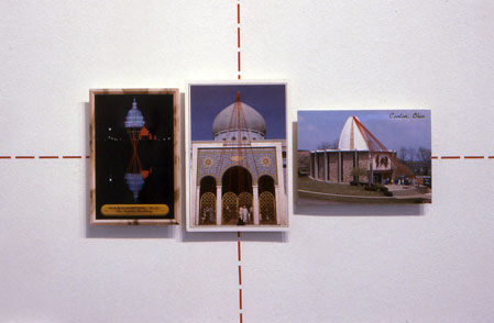 Each time the project is exhibited, I incorporate postcards from the city or town where it is on view so that people can recognize a local point of entry. This project began as a response to a long layover with a postcard purchase from a gift shop in the Olso airport in 1998.